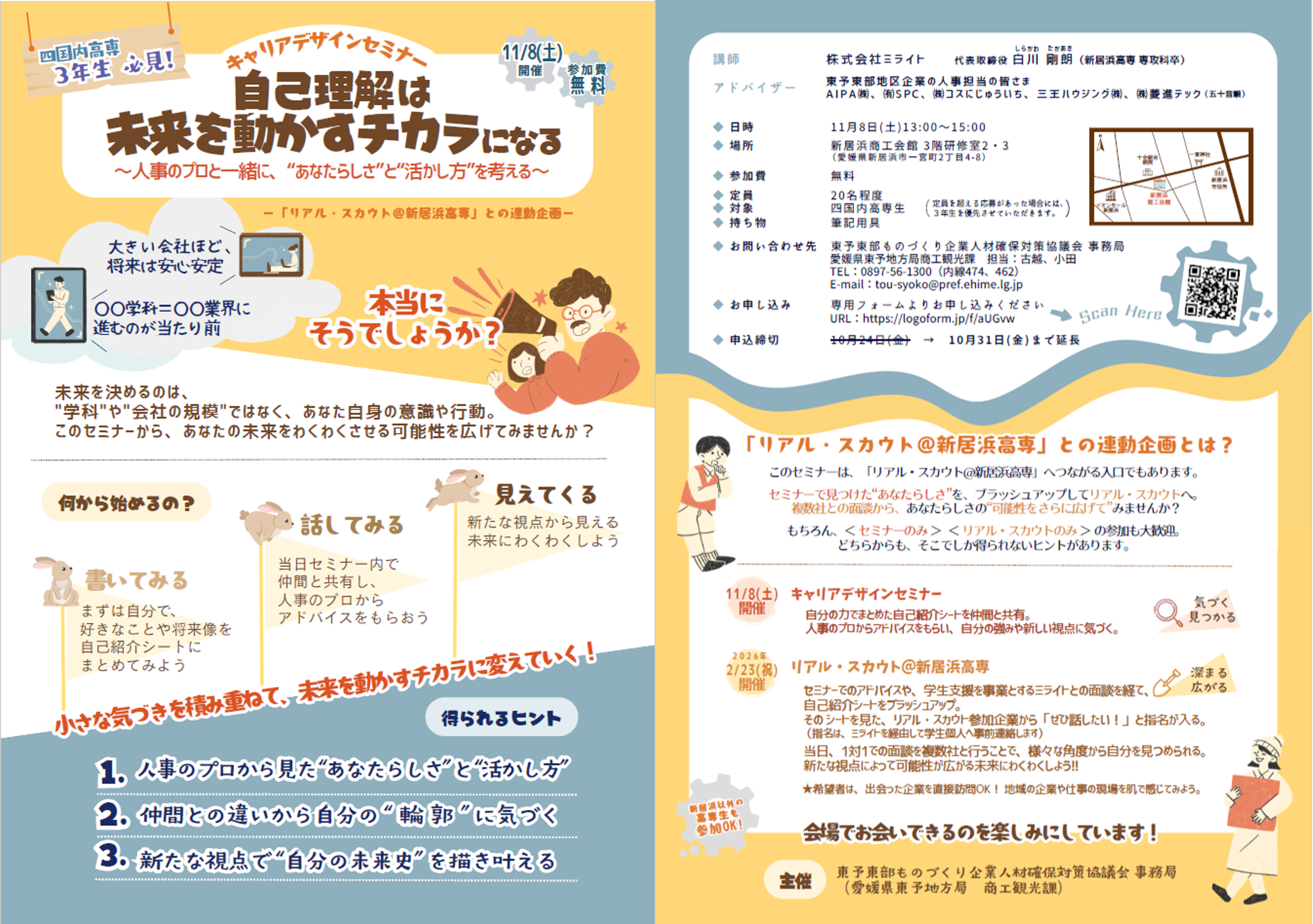 【応募締切期間延長】【四国内高専生対象】キャリアデザインセミナーの開催について