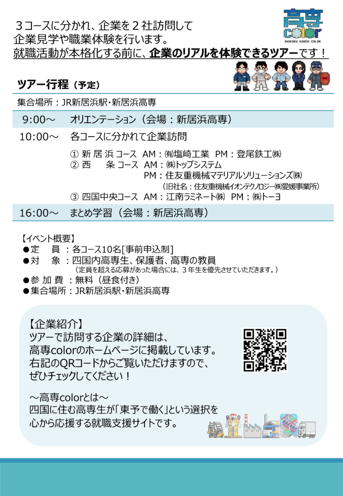 将来的な就職の視野を広げることもできますので、四国内の高専生の皆様はぜひともご参加ください。